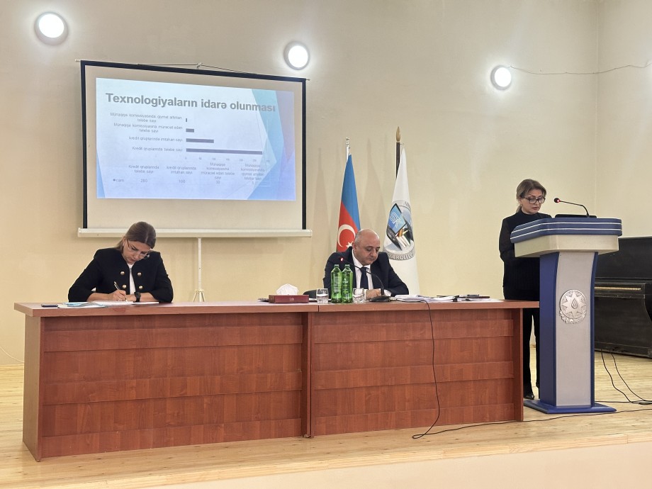 13.02.2026-cı il tarixində Sənaye və Texnologiya Kollecində 2025-2026-cı tədris ilinin payız imtahan sessiyasının nəticələrinə aid Pedaqoji Şura iclası kecirildi. İlkin məlumatdan sonra kollecin tədris hissə müdiri Lalə Nəsibova “Yazılı imtahanların keçirilməsi və nəticələri”, qeydiyyat, qiymətləndirmə və monitorinq bölməsinin rəhbəri Günel Dadaşova “Rəqəmsal imtahanların keçirilməsi və nəticələri”, şöbə müdiri Pərvin Məmmədova “ BSQ və qabiliyyət tələb edən imtahanların keçirilməsi və nəticələri”, münaqişə komissiyasının sədri, tədris işləri üzrə direktor müavini Könül Abdurrahimova “Münaqişə komissiyasının nəticələri”, istehsalat təcrübə rəhbərləri Sevinc Qəmbərova və Aynur Allahverdiyeva “Qiyabi qruplarda keçirilmiş təcrübələrin nəticələri”, tərbiyə işləri üzrə direktor müavini Asəf Məmmədov “2025-2026-cı tədris ilinin birinci yarımili müddətində keçirilmiş mədəni-kütləvi tədbirlər və qarşıda duran vəzifələr”, baş mühasib Elçin Ağayev “2025-2026-cı tədris ilinin büdcə və büdcədənkənar vəsaitlərin daxilolma və xərclənmə vəziyyəti” mövzularında çıxış etdilər. Sonra kollecin direktoru, professor Nasim Abışov Pedaqoji Şura iclasında deyilən məsələlərlə əlaqədar yekun nitqi söylədi, 2025-2026-cı tədris ilinin yaz semestrində qarşıda duran vəzifələrdən söz açdı və kollecdə həllini tapacaq cari məsələləri qeyd etdi. Daha sonra kollecdə Sosial Paket, ekoloji layihələr, yeni ixtisasların açılması, tələbələrin nizam-intizam qaydalarının təsdiqi, tələbə gənclər təşkilatınln, tələbə həmkarlar təşkilatının, tələbə elmi cəmiyyətinin yararadılması, əmək bazarlarının araşdırılması, yaz semestrində rəqəmsal imtahanların aparılması və digər məsələlər barədə danışdı.