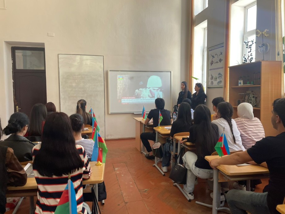 2016-cı ilin aprel ayında baş vermiş Aprel döyüşlərinin ildönümünə aid Ə104, D104 qruplarında kollecimizin tarix müəllimləri: Gülnarə Əbdüləzimova və İlahə Hüseynova tərəfindən nümunəvi dərslər keçirilmişdir. İlk öncə dərsdə şəhidlərimizin əziz xatirəsi bir dəqiqəlik sükutla yad edilmişdir. Sonra hər iki müəllimin dərsində 2016-cı ilin aprel ayında baş vermiş döyüşlər haqqında tələbələrə ətraflı məlumat verilmiş və bu döyüşlərin Azərbaycan tarixindəki əhəmiyyətindən danışılmışdır. Tələbələr dərsdə fəal iştirak etmişlər.